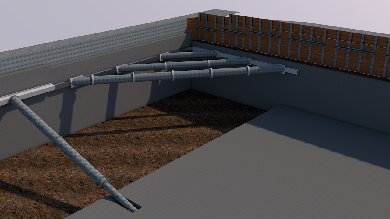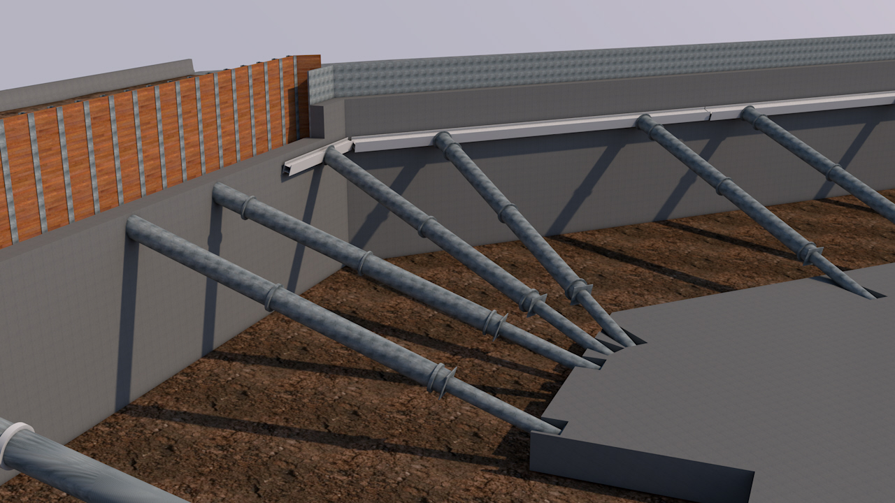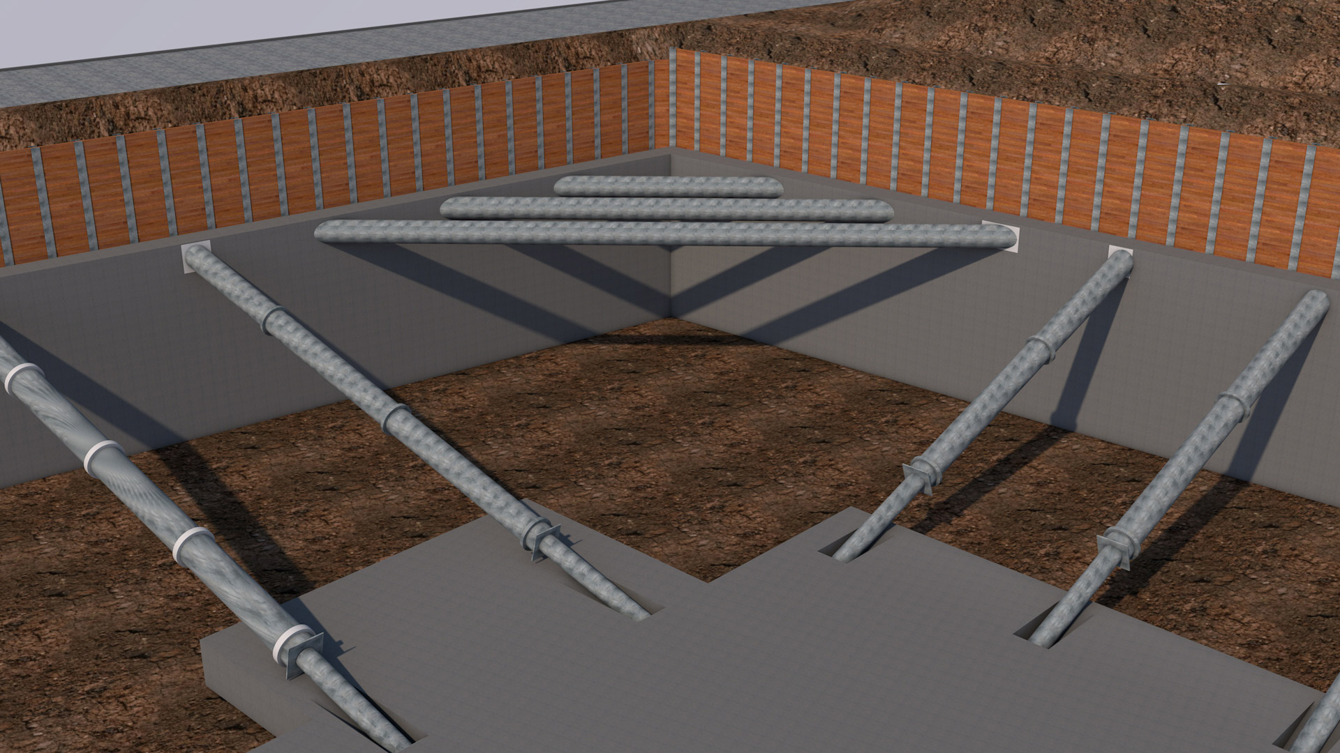 Im folgenden Projekt sieht man Baugrubensteifen aus Stahlrohren während des Bauprozesses: