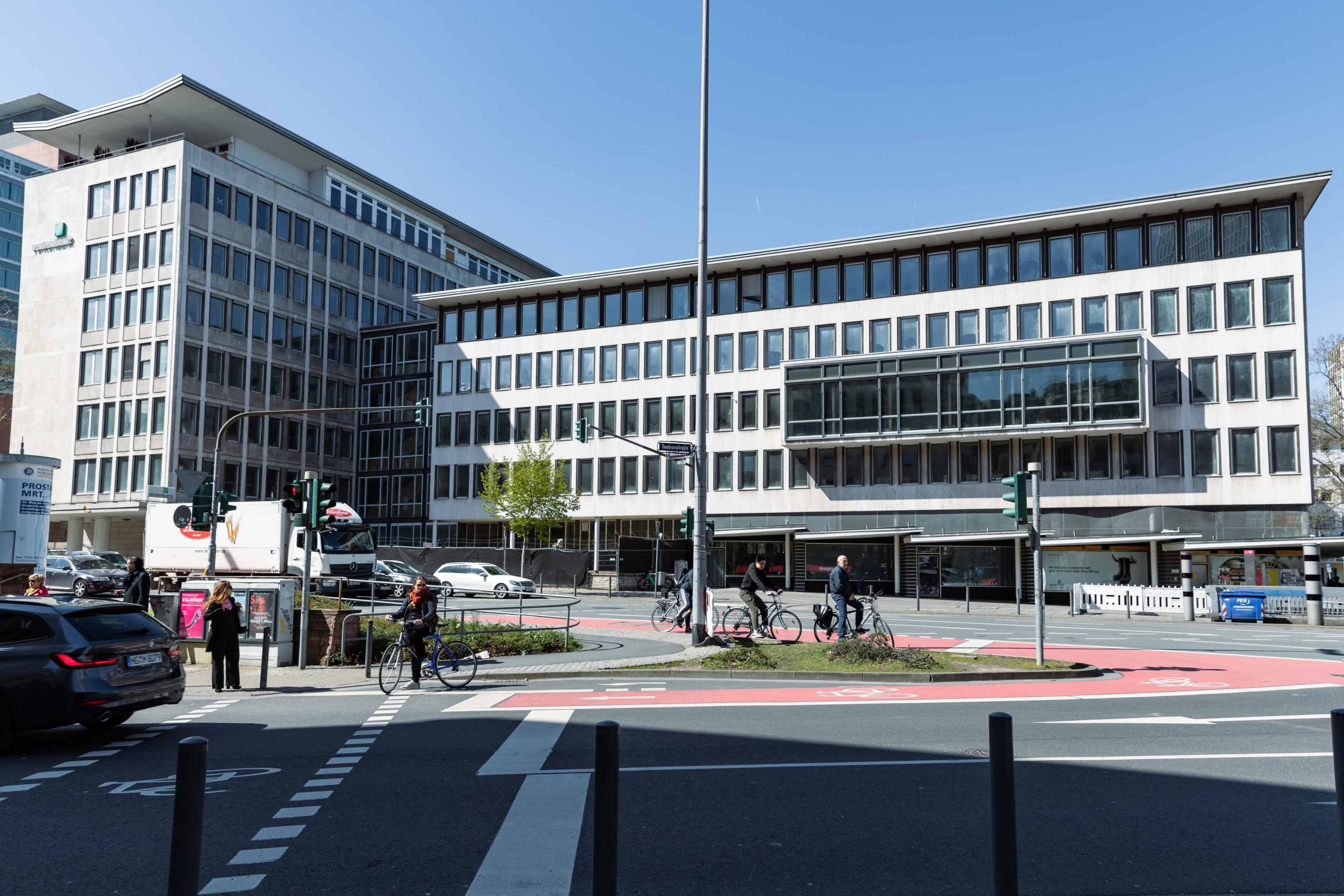 Die Revitalisierung im denkmalgeschützten Bestand ist eine herausfordernde Aufgabe, die baulichen Sachverstand und Kreativität erfordert. Während der Bauphase arbeiten die rund 300 MitarbeiterInnen der Rentenbank interimsweise im „Goldenen Haus“ in der City West. Für 2026 ist der Wiedereinzug der Rentenbank geplant. Die direkte Umgebung soll durch das Ansiedeln von Gastronomie und das Anlegen von Grünflächen belebt werden.