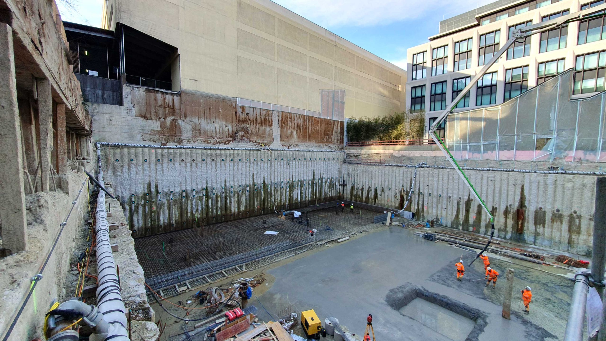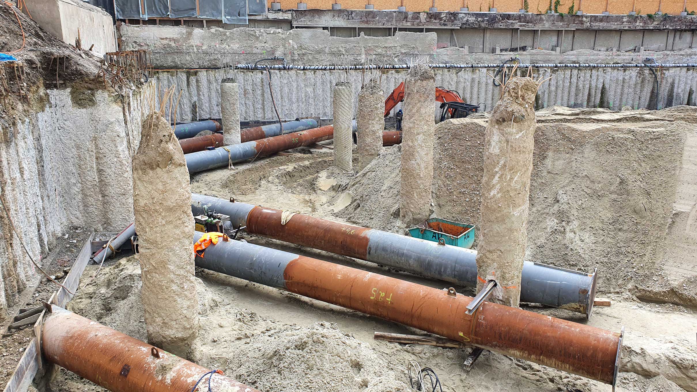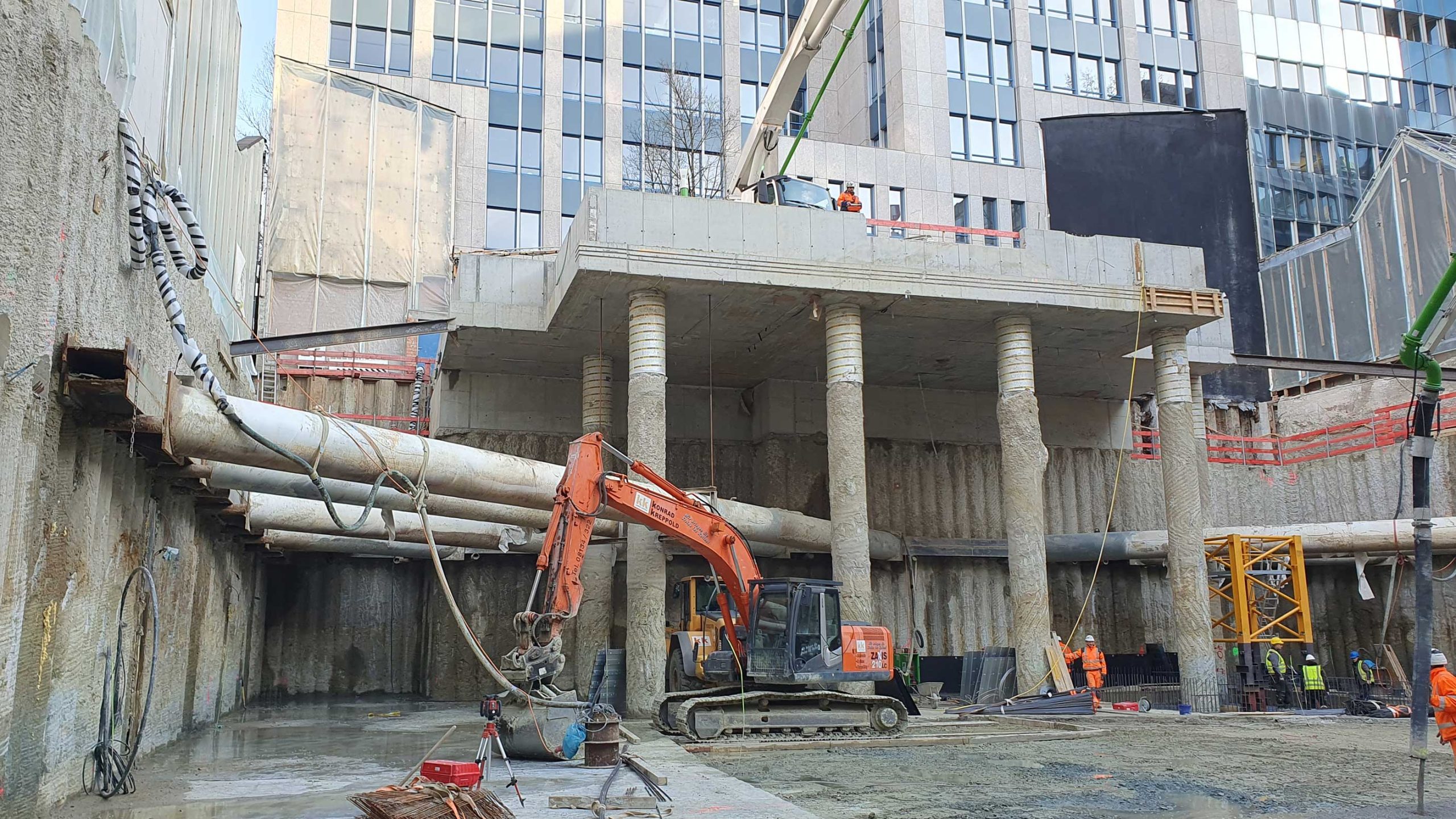 - Tiefe der Baugrube ca. 11,5 m, ca. 8,5 m im Grundwasser