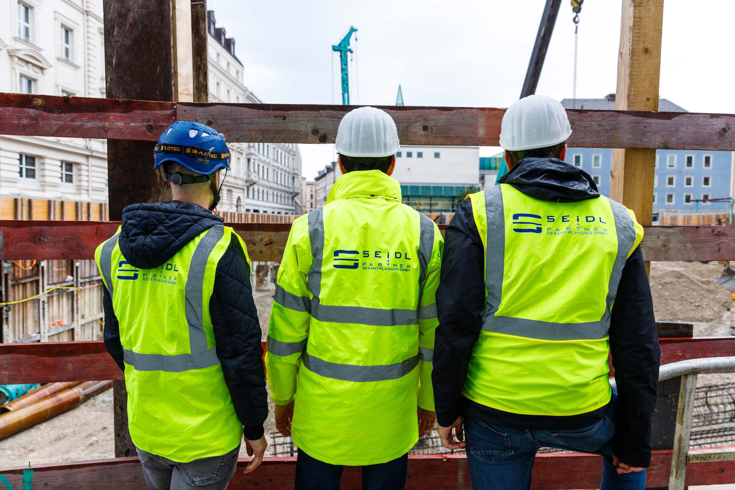 Auch vor einem regnerischen Tag schreckten unsere Ingenieure und Konstrukteure der Abteilung Spezialtiefbau der Seidl & Partner Gesamtplanung GmbH nicht zurück. Zusammen besuchten die Projektbeteiligten die Baustelle in der Hildegardstraße in München und verschafften sich einen fachlichen Überblick über den aktuellen Baufortschritt.