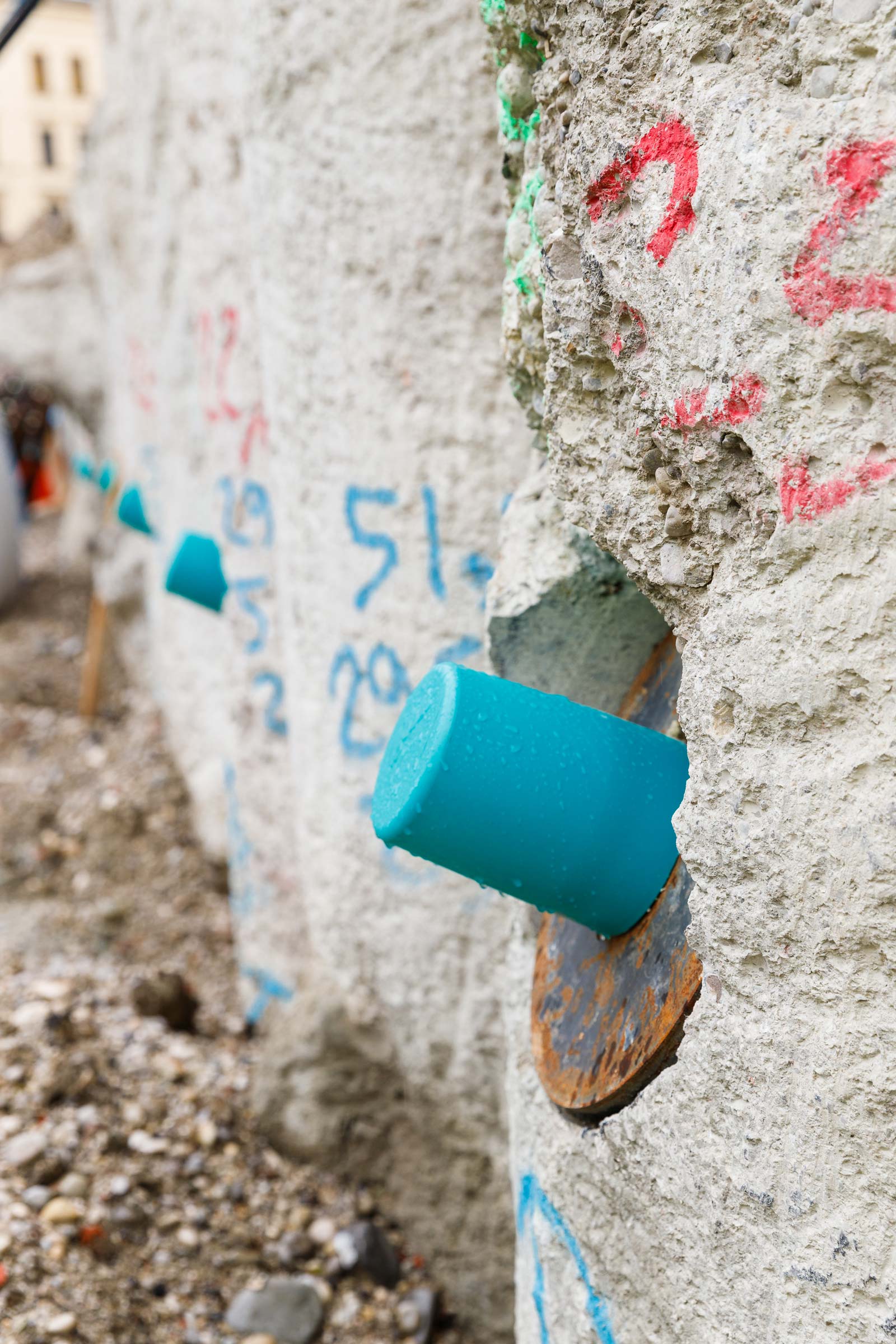 Eine technische Meisterleistung ist die Planung einer viergeschossigen Duplex-Garage in der Baugrubenmitte mit einer Gesamttiefe von ca. 23,5 m. Bohrpfähle und Anker werden als spezielle Konstruktionselemente verwendet und in den Boden eingebracht. Sie dienen als Verankerungspunkte, um die Kräfte abzufangen und das Bauwerk sicher zu halten. Die Planung der hier notwendigen Maßnahmen erfordert ein hohes Maß an Fachwissen und Erfahrung im Spezialtiefbau. Die Bohrungen müssen präzise durchgeführt werden, um die Pfähle und Anker an den richtigen Stellen zu platzieren. Jeder Schritt muss sorgfältig geplant und ausgeführt werden, um die Sicherheit der Arbeitenden und die Stabilität der Baugrube zu gewährleisten.