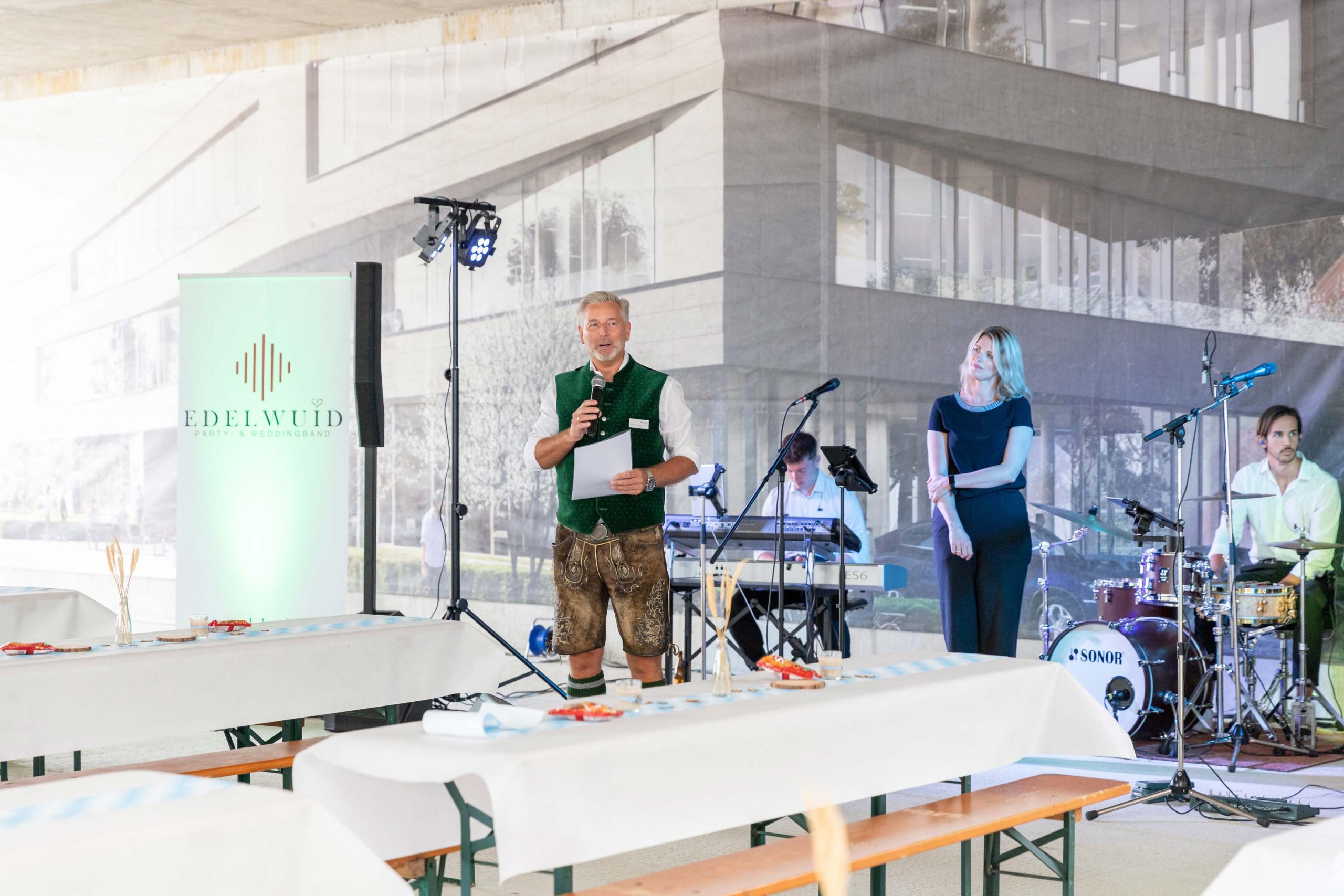 Nach einer Begrüßungsrede des Geschäftsführenden Gesellschafters der EXPEC Immobiliengruppe, Herrn Thomas Gugau, wurde der Rohbau offiziell eingeweiht. Begleitet von der Band Edelwuid fanden die Gäste anschließend bei leckerem Essen und lockeren Gesprächen zusammen. Der Humorist Josef Piendl, alias Bäff, sorgte mit seinem Gstanzl für einen lustigen Abschluss eines sehr gelungenen Richtfests.