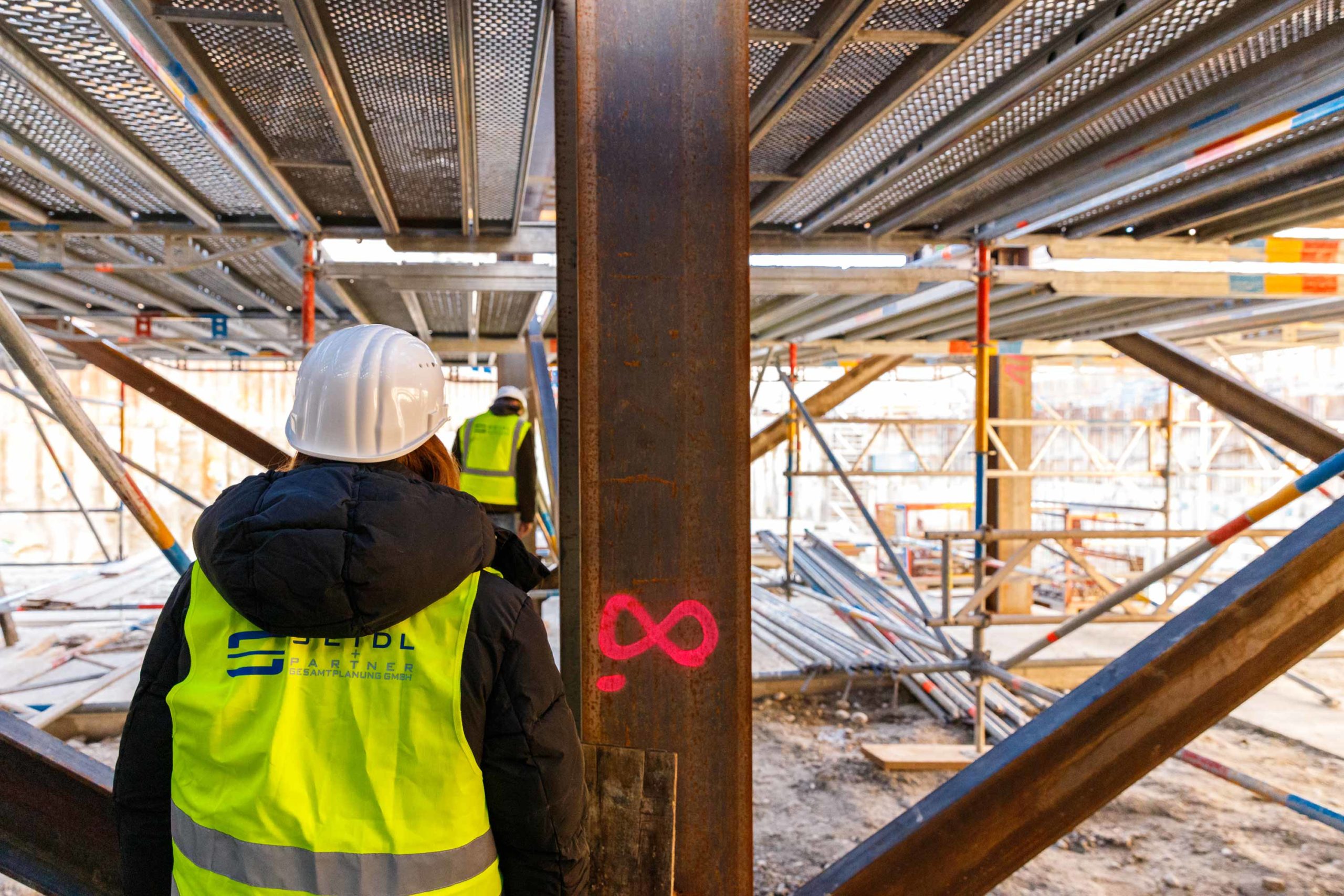 Unsere Ingenieur:innen und Konstrukteur:innen der Abteilung Spezialtiefbau der Seidl & Partner Gesamtplanung GmbH waren in der Hildegardstraße in München, um die aktuellen Stahlbauarbeiten an der Logistikplattform zu kontrollieren.