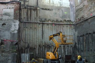 Unsere Leistungen: Tragwerksplanung der Baugrubenumschließung und Gründung sowie Aussteifung und Wasserhaltungskonzept in allen Vor- und Rückbauzuständen